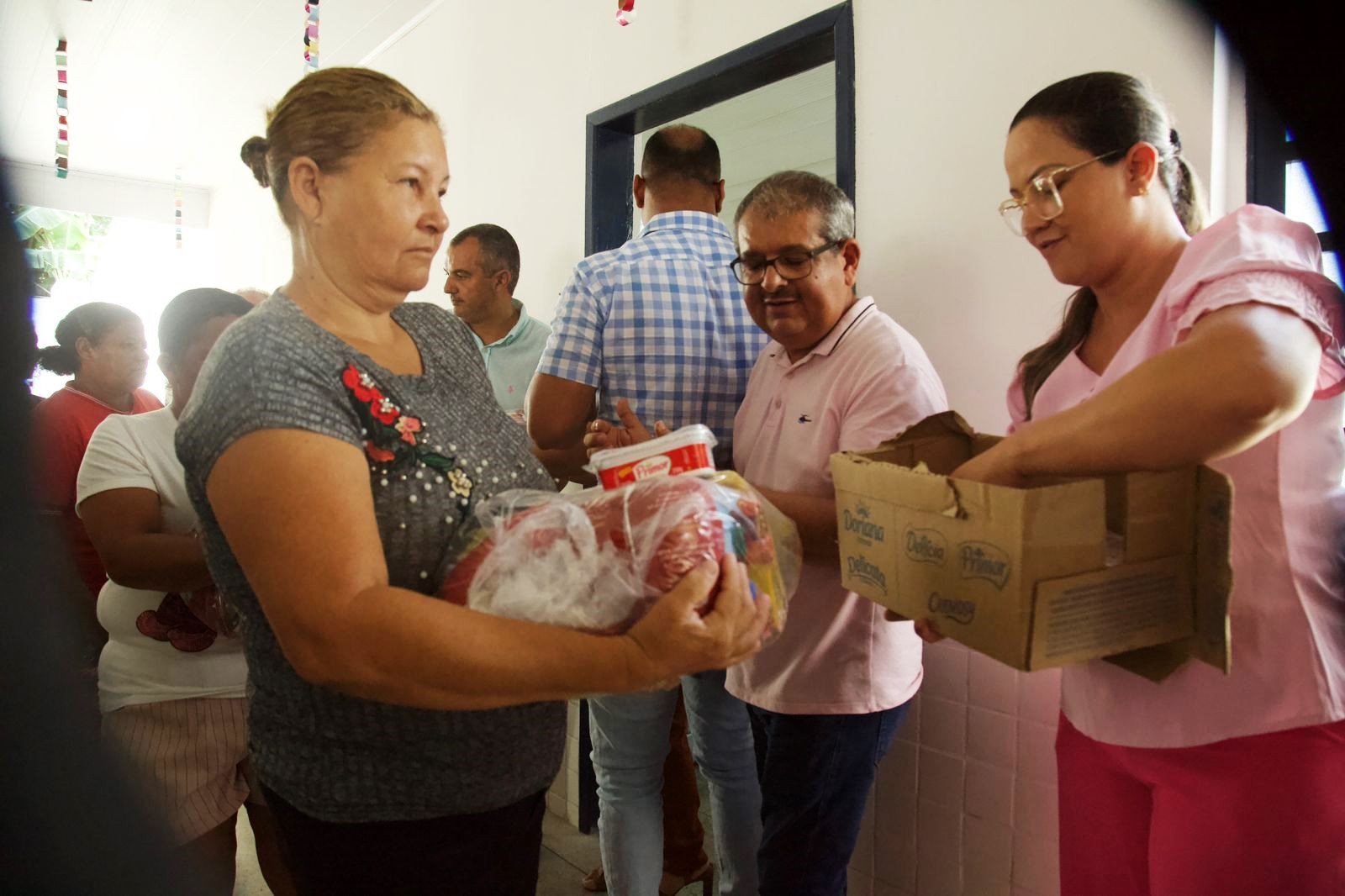 A distribuição das cestas foi realizada na sede do município, no Distrito Luziápolis e no Povoado Chã da Imbira, Povoado Mineiro e Usina Porto Rico.