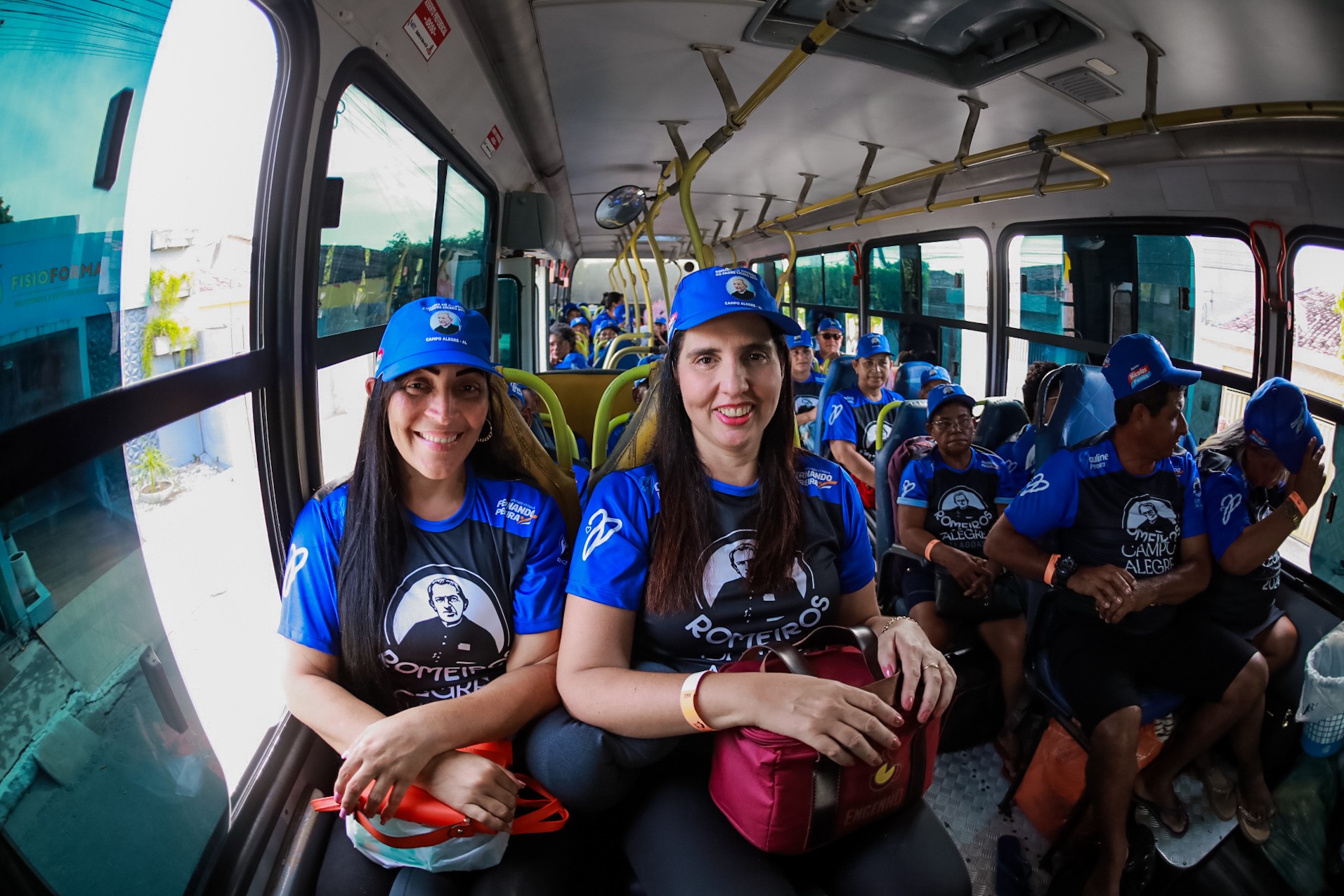 A ex-prefeita Pauline Pereira seguiu nos ônibus com os campo-alegrenses, e o prefeito Nicolas Pereira seguirá viagem na terça-feira onde se juntará aos romeiros nas celebrações em Juazeiro do Norte.
