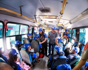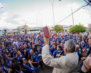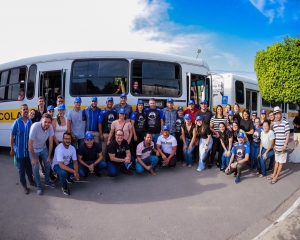 O prefeito Nicolas Pereira ao lado da ex-prefeita Pauline Pereira, vereados e secretários municipais visitaram todos os Ônibus, desejando uma abençoada romaria a todos.