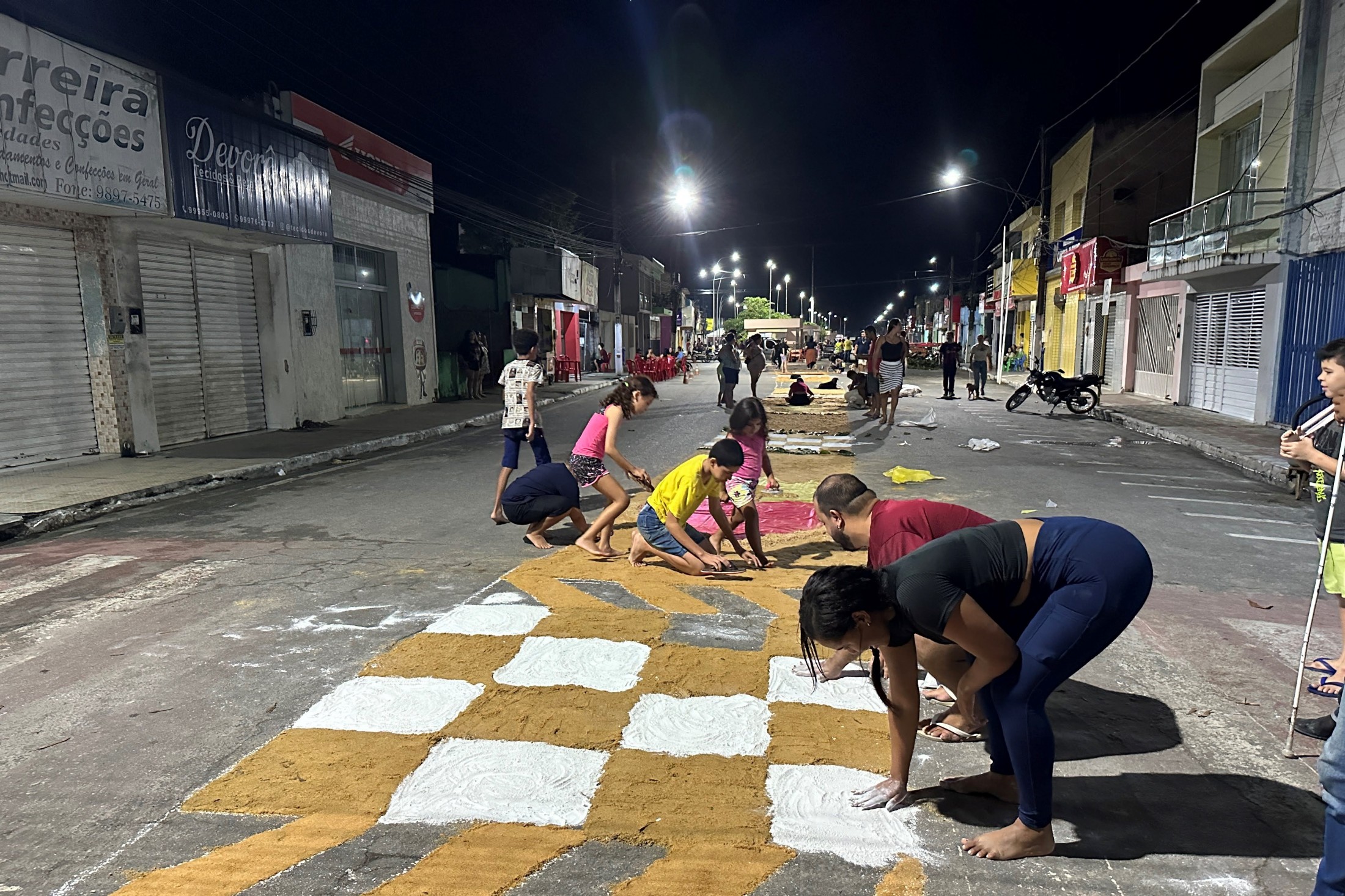 Todos os anos o enorme tapete é confeccionado pelas mãos dos moradores da cidade que passam a noite inteira envolvidos na manutenção da tradição religiosa e cultural.
