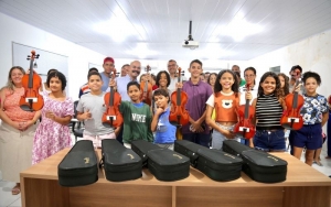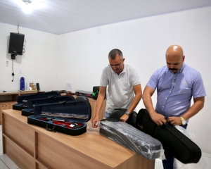 O momento contou com a honrosa presença do Prefeito Nicolas Pereira, que fez a entrega oficial dos violinos aos estudantes. Este gesto simboliza o total apoio da gestão municipal, que vem investindo intensivamente na valorização da arte e cultura local.