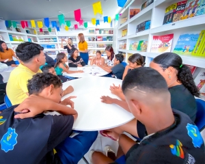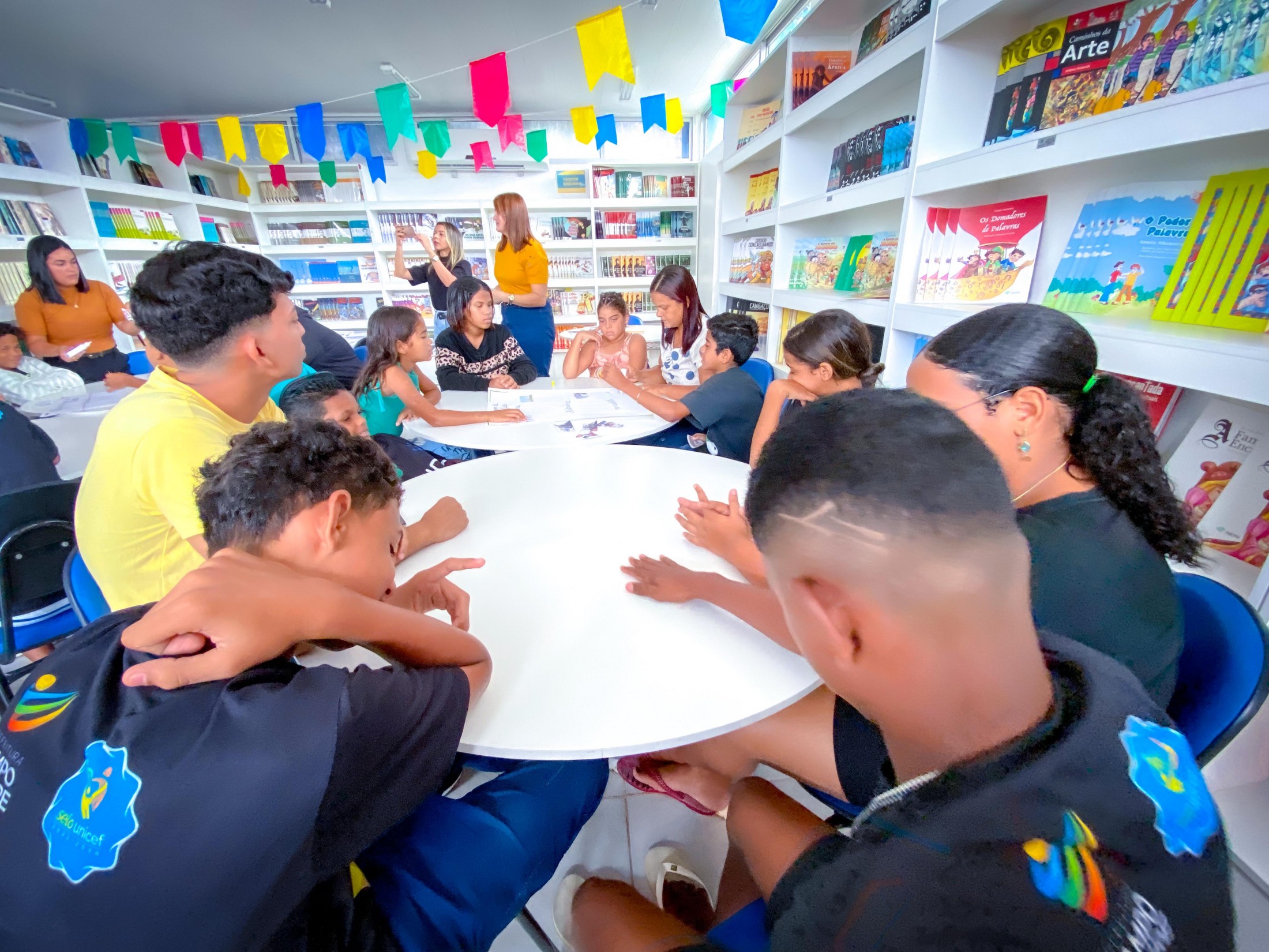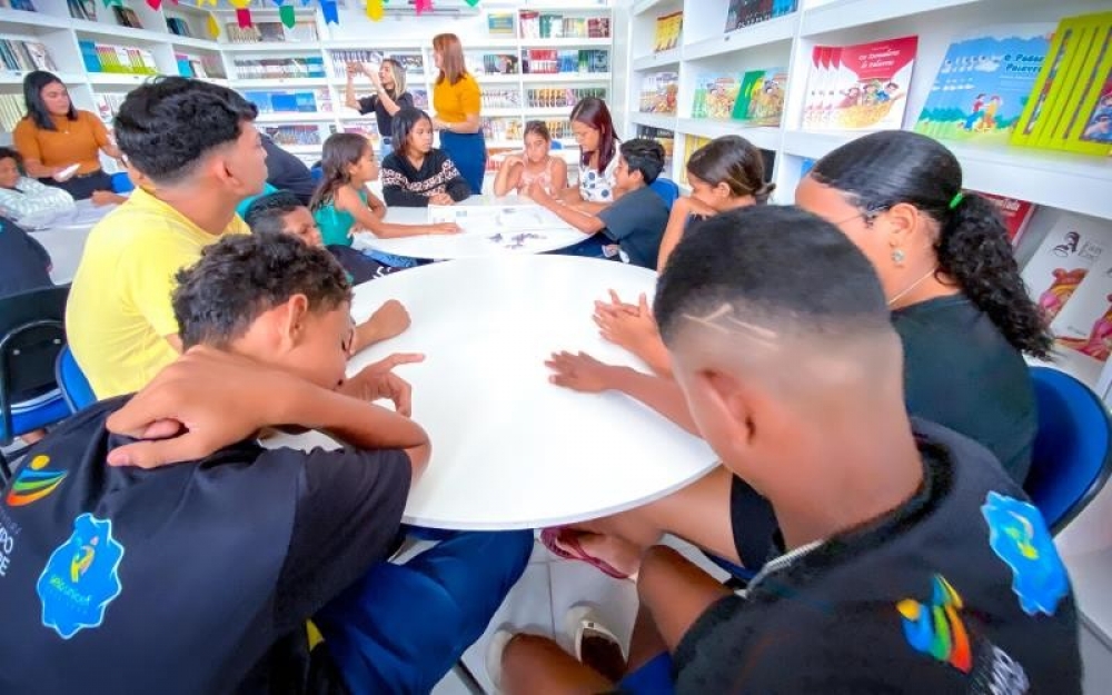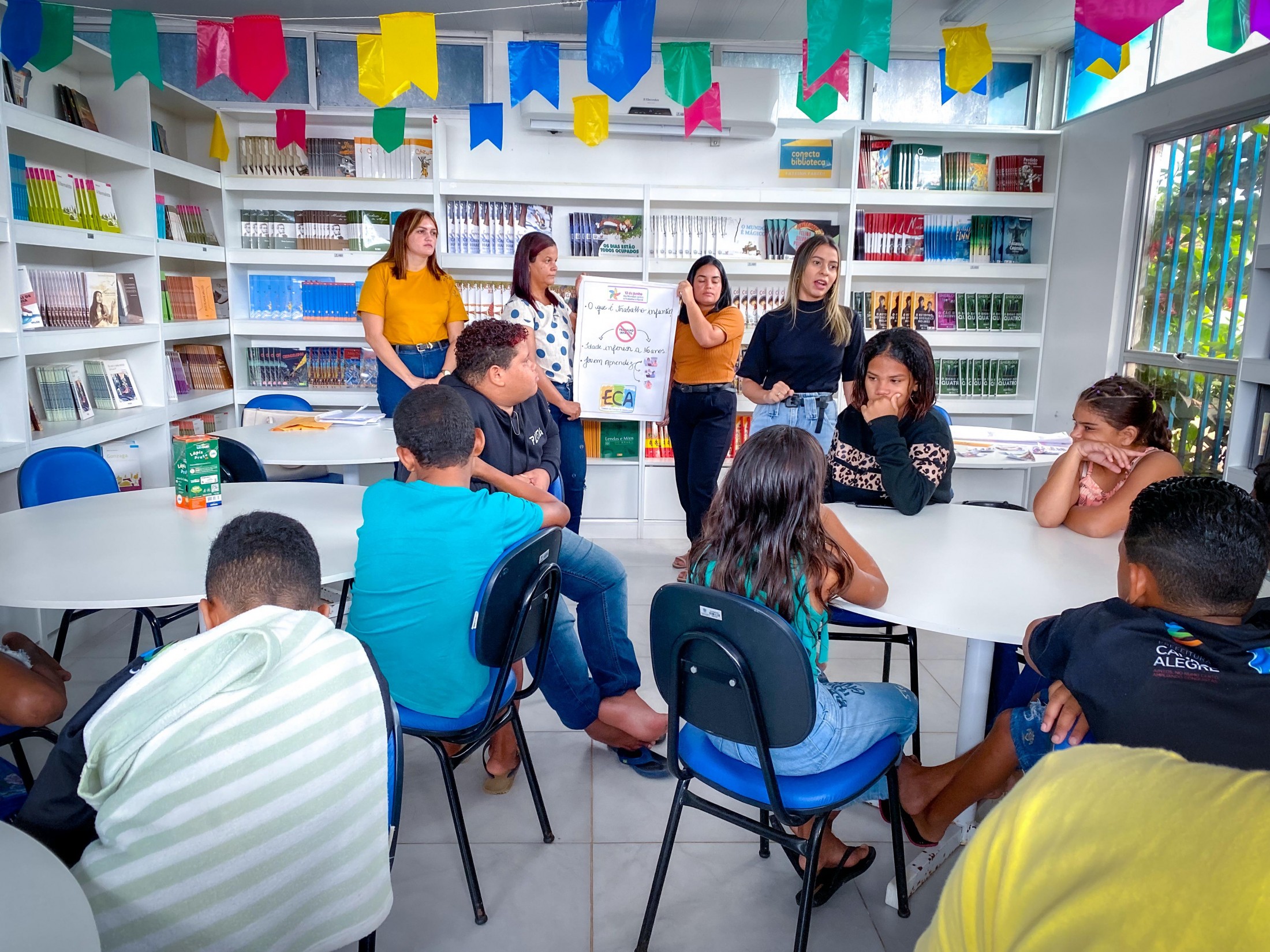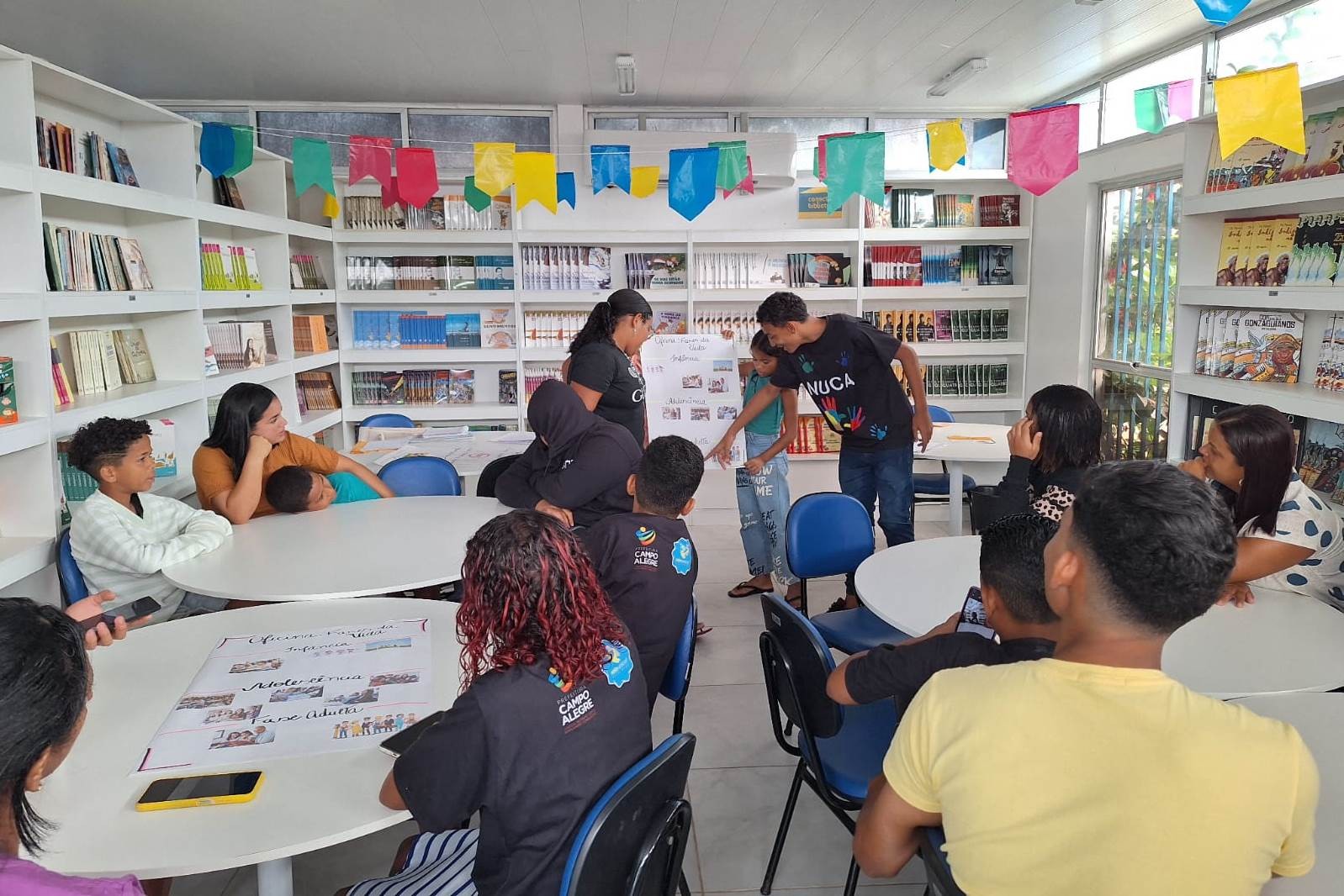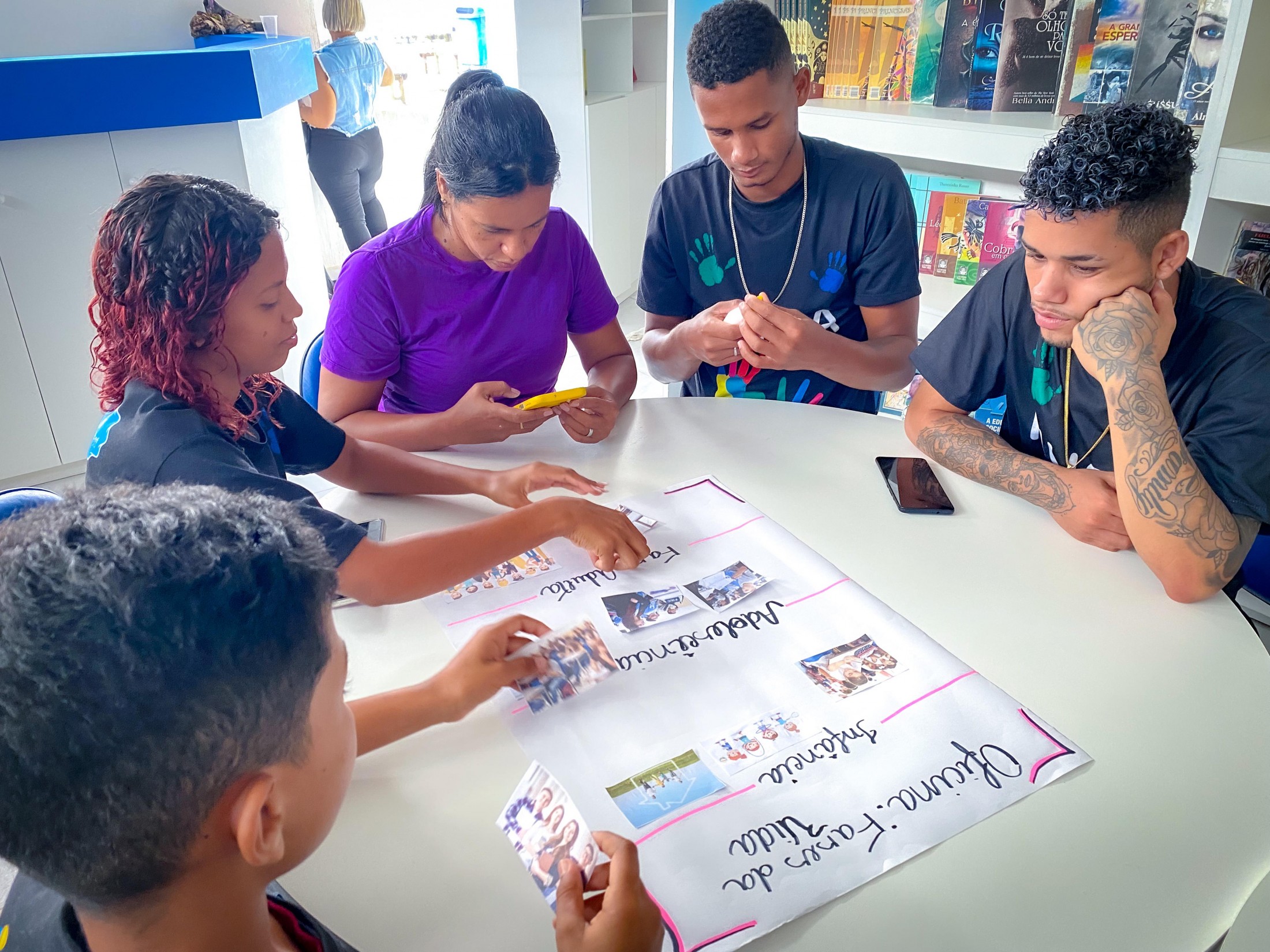 Crianças, adolescentes e orientadores sociais que compõem o serviço de convivência de fortalecimento de vínculos do distrito Luziápolis participaram da oficina "fases da vida", direcionada pelas assistentes sociais Rosilene Simão e Jacqueline moura, que introduziram o tema a partir da apresentação de forma ilustrativa do conceito de trabalho infantil, buscando dinamizar a atividade, assim como, a interação dos presentes.