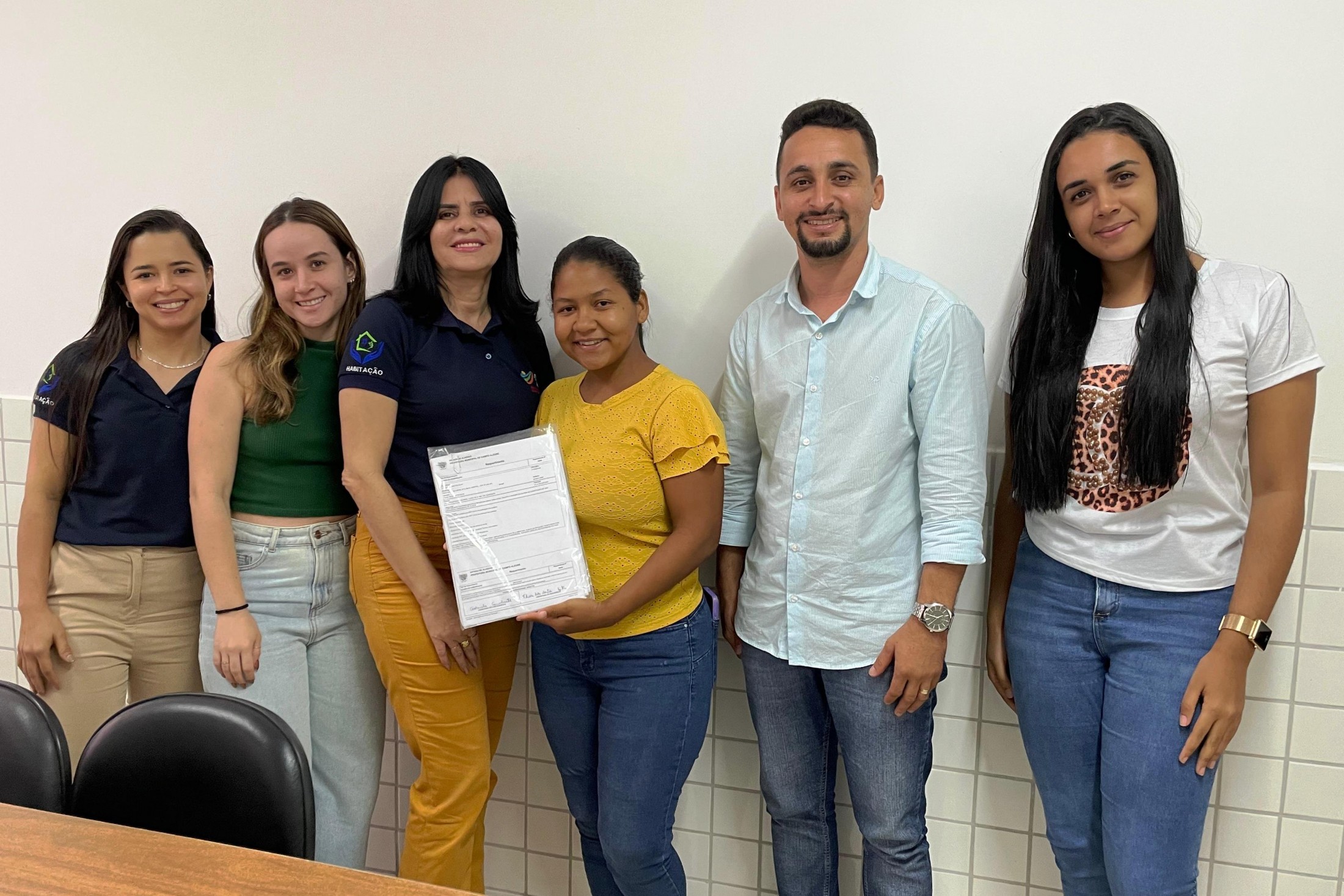 Na oportunidade a contemplada foi a senhora Thais do Santos Silva que recebeu a documentação pela a secretária municipal de habitação Dijane Sampaio e todas as orientações pelos profissionais do Setor de Fiscalização de Obras a Arquiteta e Urbanista Gabriela Cavalcante; o Engenheiro Civil Anderson Murilo; e as cadastradoras do setor de Habitação Joana Alves e Mayara Fernanda.