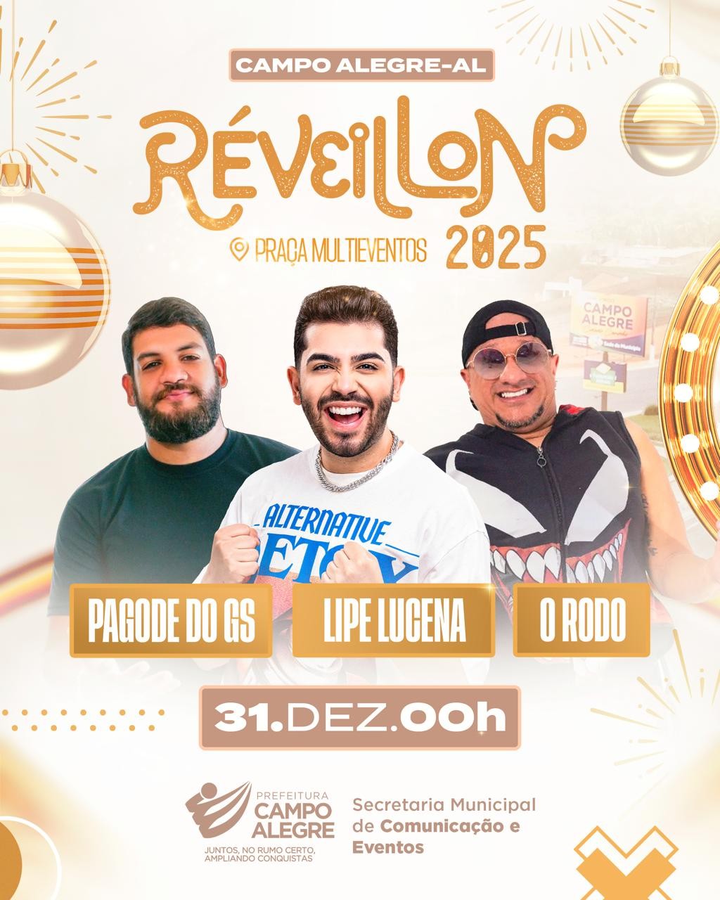 A Prefeitura de Campo Alegre preparou uma grande festa para comemorar a chegada do Ano Novo no réveillon da Integração 2024/2025. A festa do Réveillon da CIDADE CARINHO, que sempre atrai um grande público com pessoas da cidade e região será realizada na Praça Multieventos da cidade.