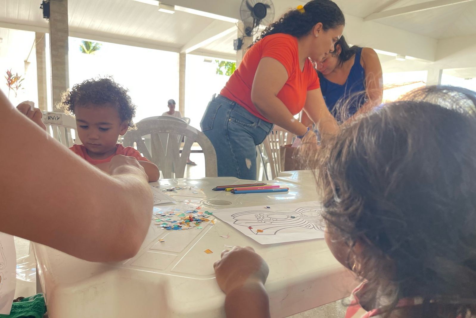 As crianças aproveitaram muito o momento de diversão e cuidado, vivenciando a oportunidade de explorar a própria criatividade e liberdade de expressar suas ideias e convicções.