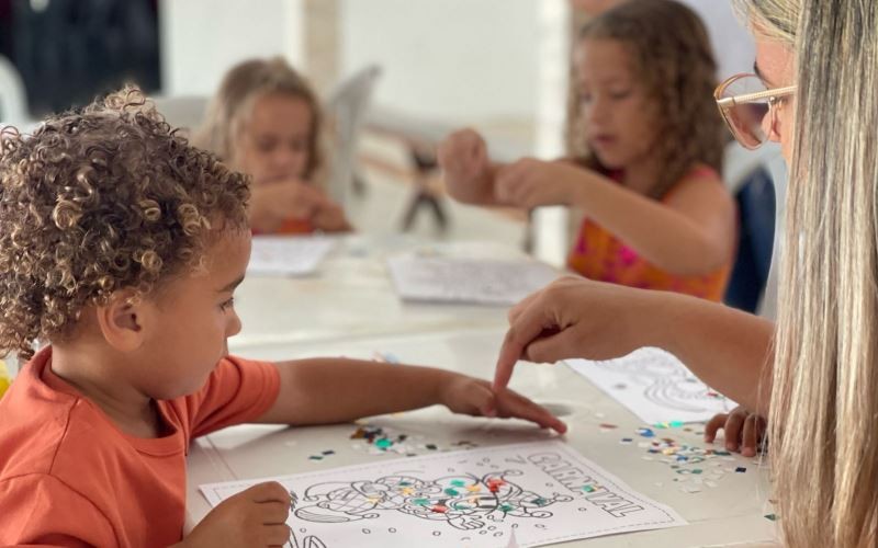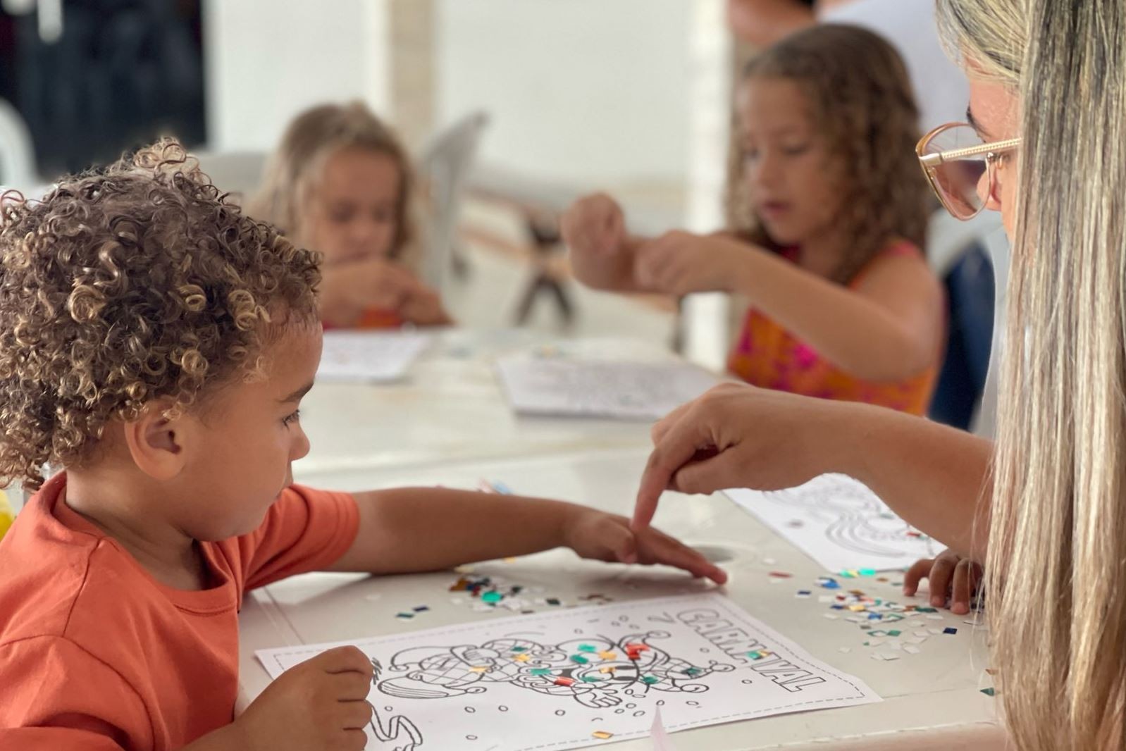 Na tarde desta terça-feira 25 de fevereiro o Programa Criança Feliz realizou uma tarde lúdica com foco no desenvolvimento infantil através da criação de artes voltadas para o carnaval.
