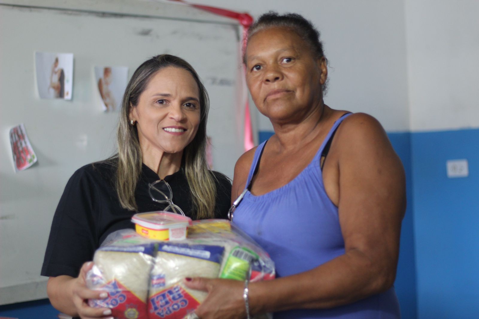 A entrega das cestas contou com a participação do prefeito Nicolas Pereira, da ex-prefeita Pauline Pereira, vereadores e secretários municipais.