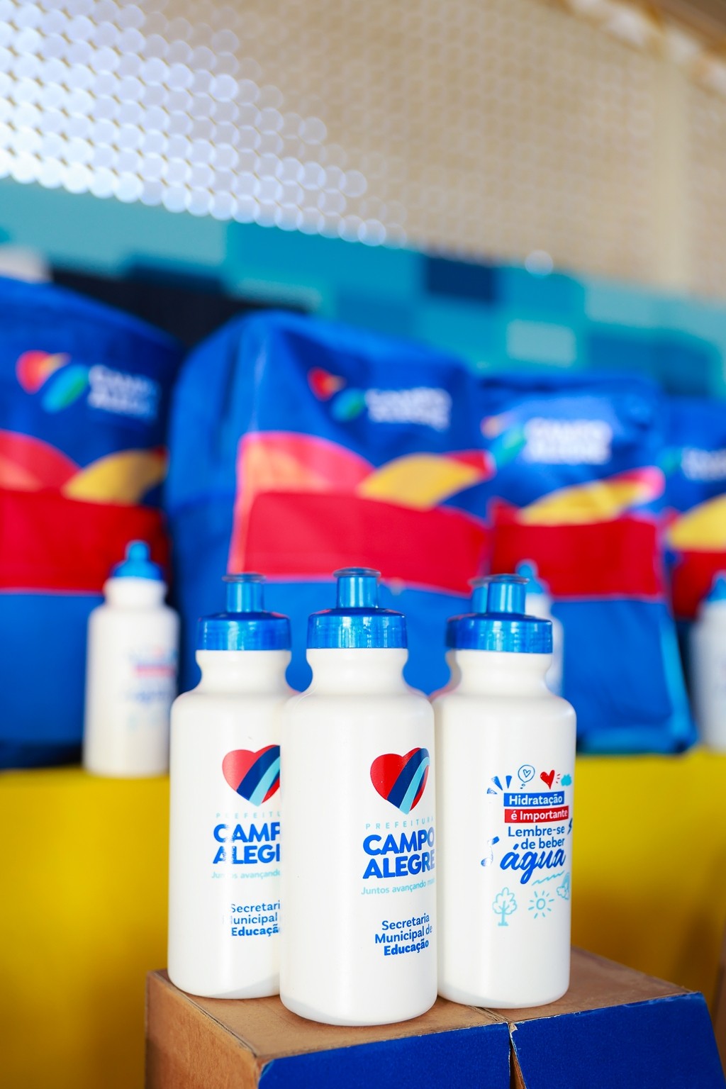Além dos uniformes os alunos receberam mochilas e garrafinhas squeezeres e receberão nos próximos dias os kits escolares completos.