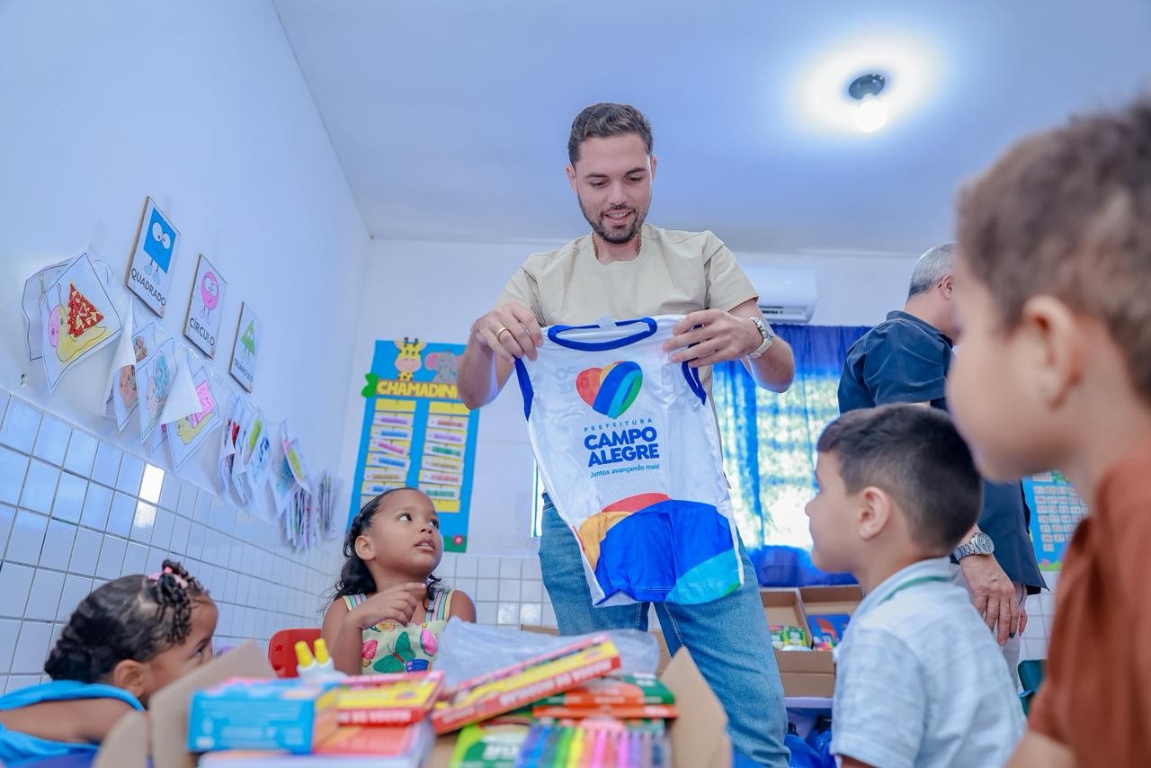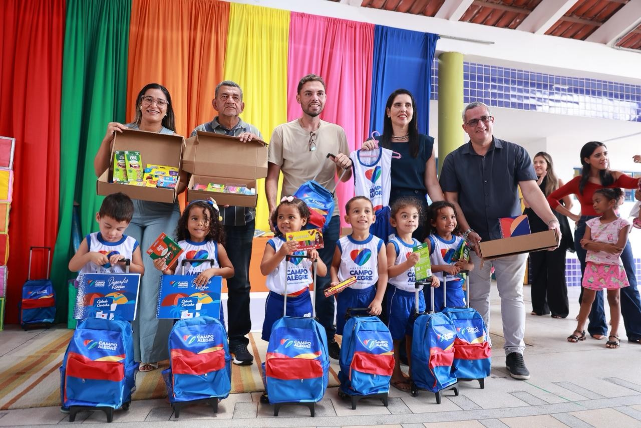 Na manhã desta sexta-feira 13 de Março, a prefeita Pauline Pereira, o vice-prefeito Leonardo Monteiro, os gestores Nicolas Pereira e Duduzinho Pereira, vereadores e secretários municipais realizaram as entregas dos novos fardamentos, mochilas e kits escolares para os alunos que estudam em mais 06 instituições da Rede Municipal de Ensino de Campo Alegre.