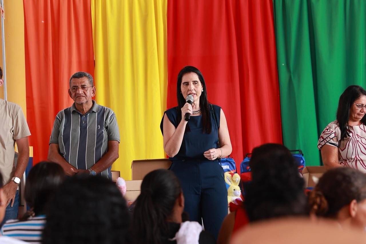 Durante as entregas a prefeita Pauline Pereira destacou que o uniforme escolar vai além da padronização, representando cuidado, organização e mais segurança para as famílias, já que facilita a identificação dos alunos.
