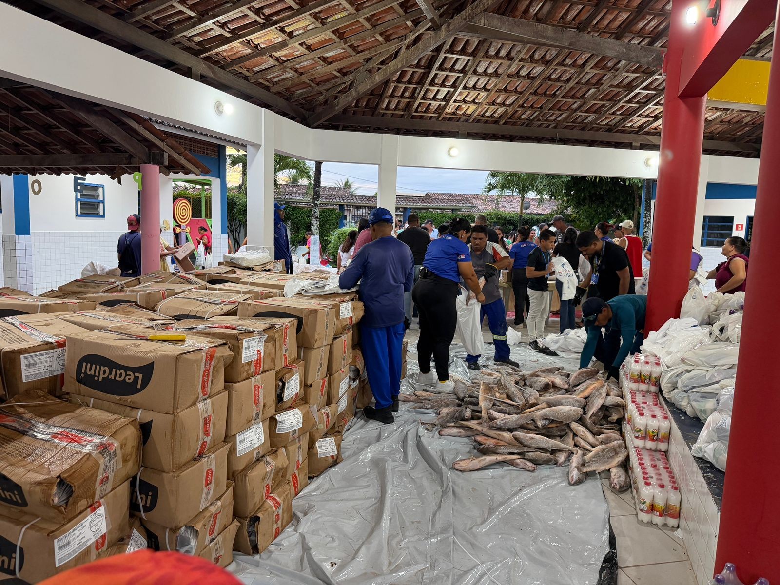 Além dos pescados, foram distribuídos 15 toneladas de arroz, 15 toneladas de leite de coco e 15 mil unidades de sucos de uva.