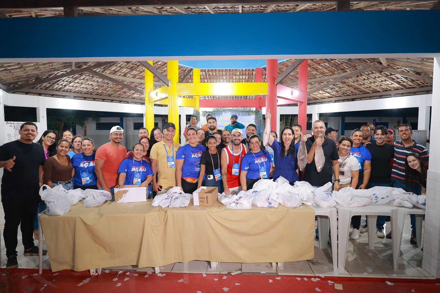 A prefeita também agradeceu a todos os envolvidos na organização e distribuição do peixe, garantindo que o peixe e os demais itens fossem entregue em todas as comunidades.