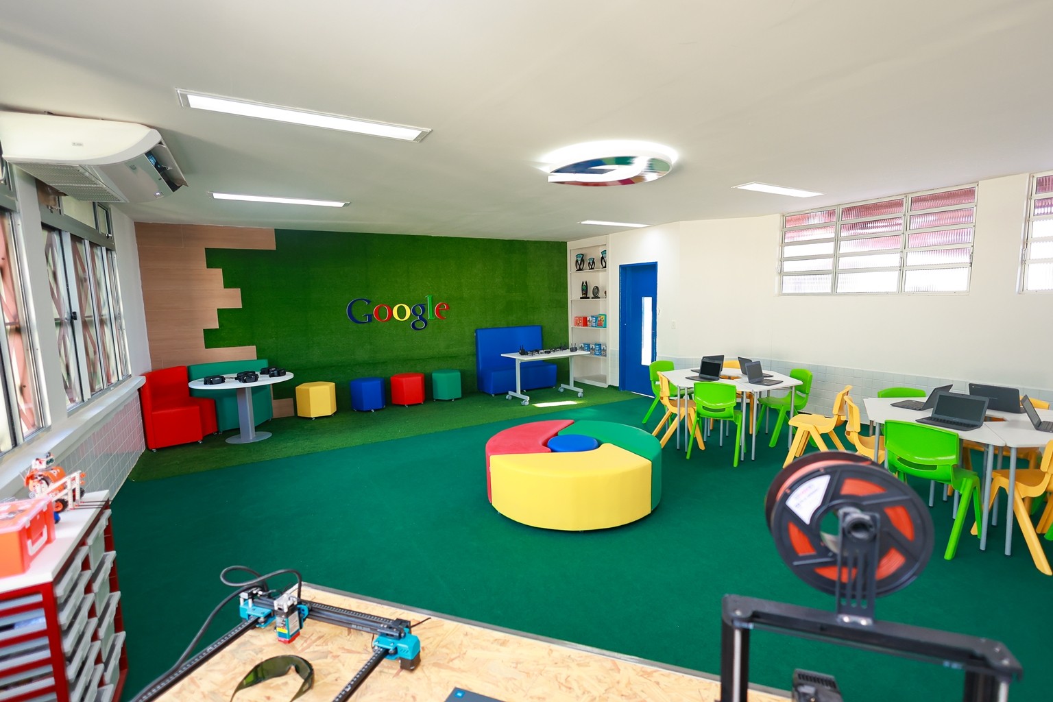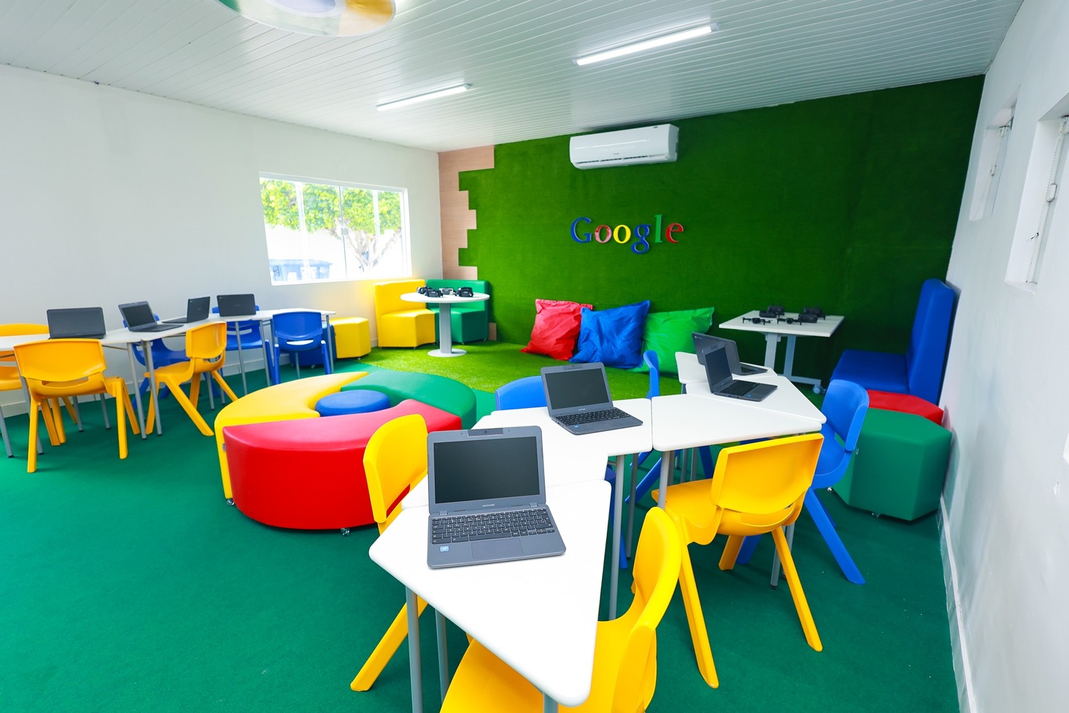 Nas salas Google serão desenvolvidas atividades voltadas para áreas fundamentais, como robótica, educação financeira, oratória e comunicação, programação com Inteligência Artificial e gamificação, promovendo não apenas o conhecimento técnico, mas também habilidades socioemocionais, pensamento crítico, criatividade e autonomia.